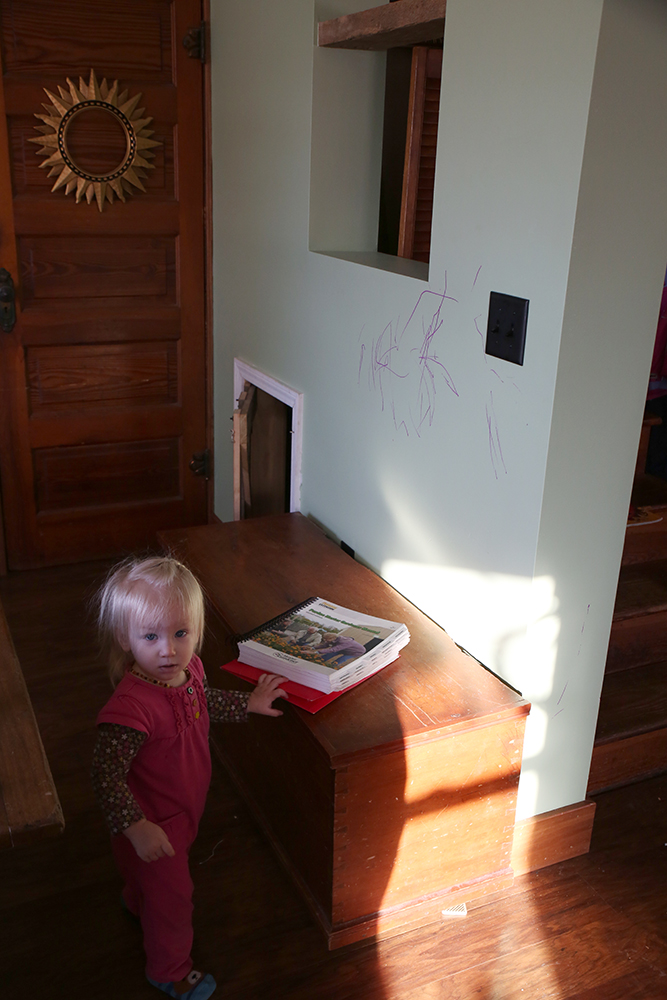 I think the favorite part of my day was splitting wood with Henry and Iris in the workshop today. Last week the kids and I were all sick and now today Johnny has been stuck on the couch all day with a fever, aches, and sore throat. I should probably be grateful he didn’t have to miss work, but the weekends are so precious for us! For me- another adult around here to help out! A chance to TRY and catch up. And lately, it feels like we’re slogging through muck and mire trying to accomplish anything. We’re just at a point where it feels like there is never enough time. And we’re not busy people! Not as in busy out going and doing things, we just have so much to keep up with here.