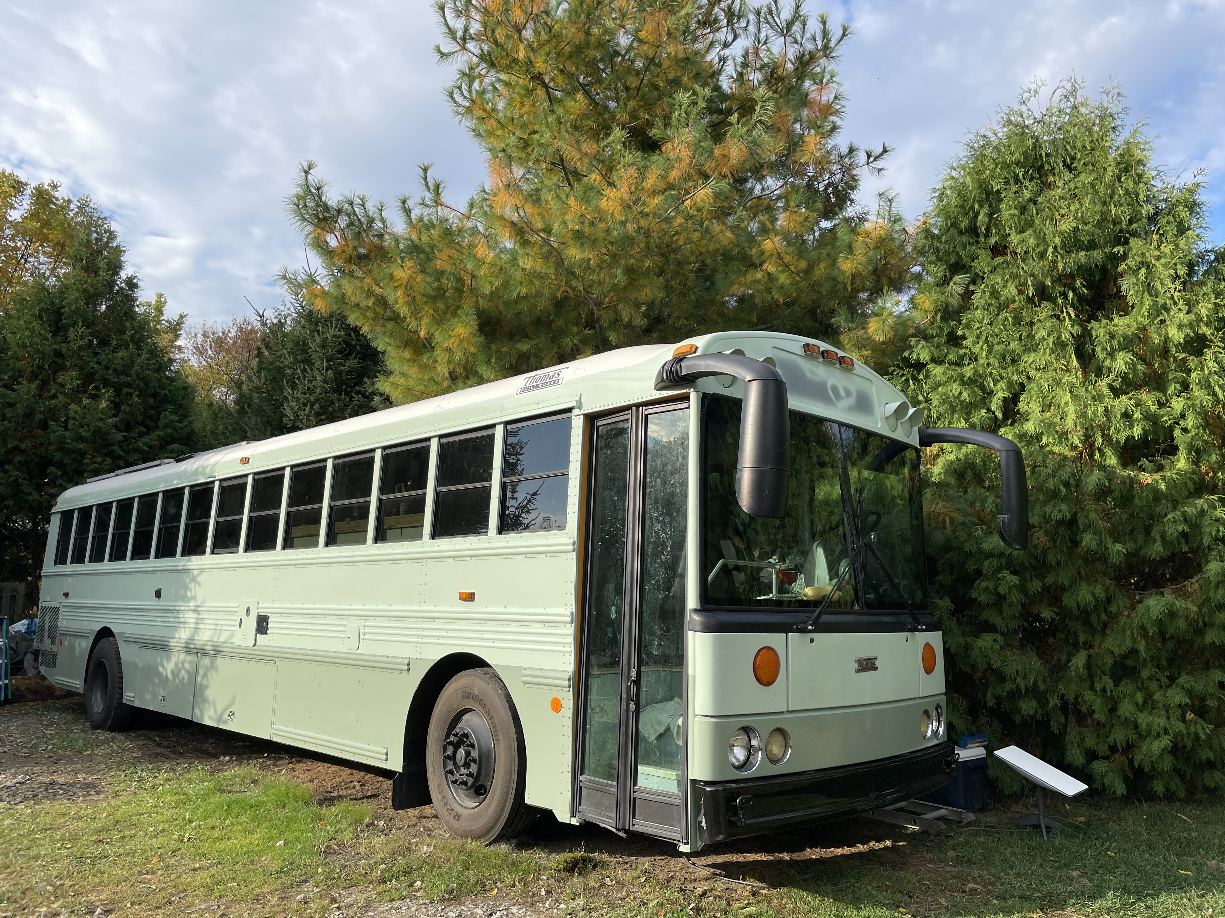 SKOOLIE: A school bus, converted to a home-on-wheels.