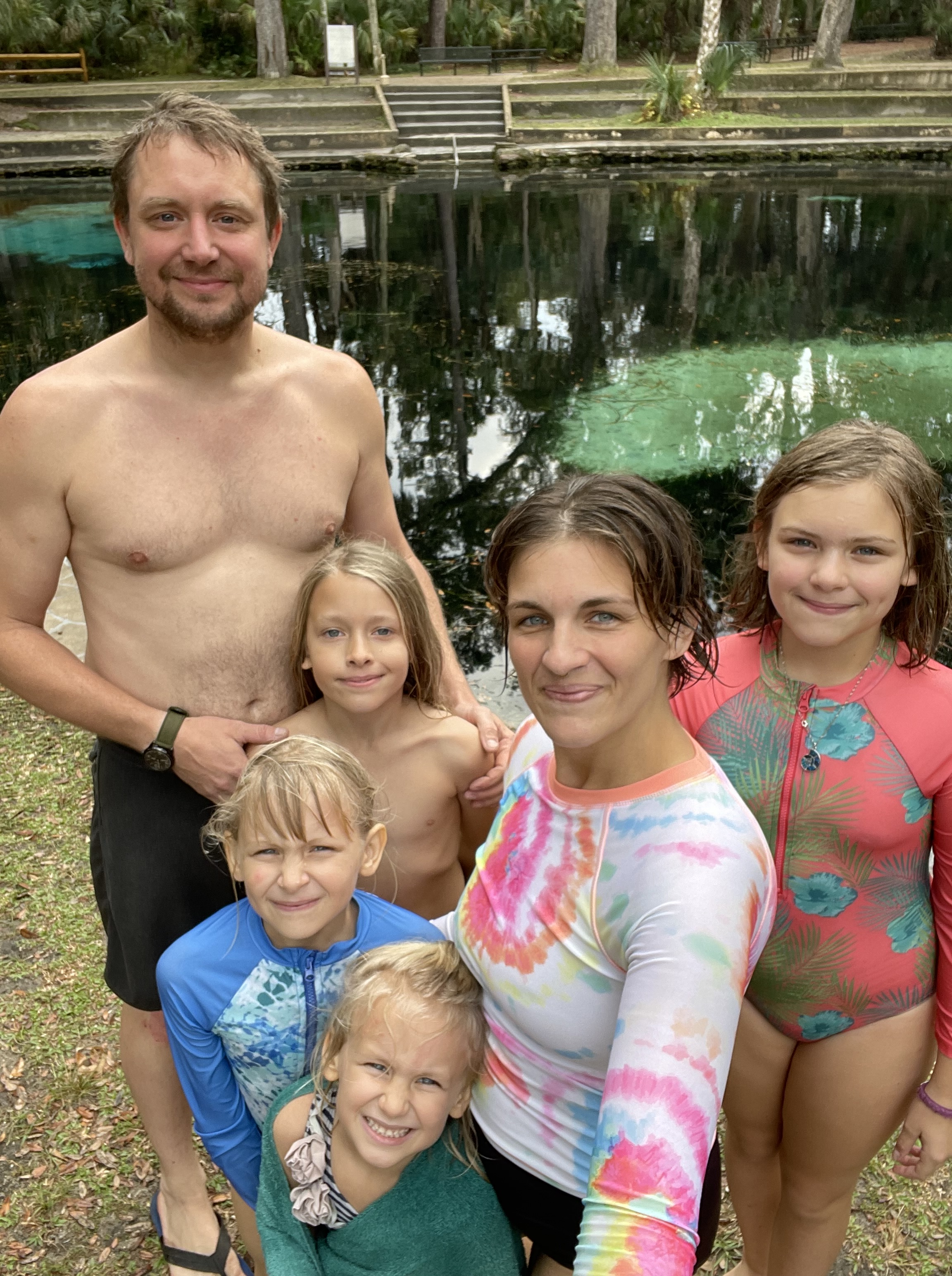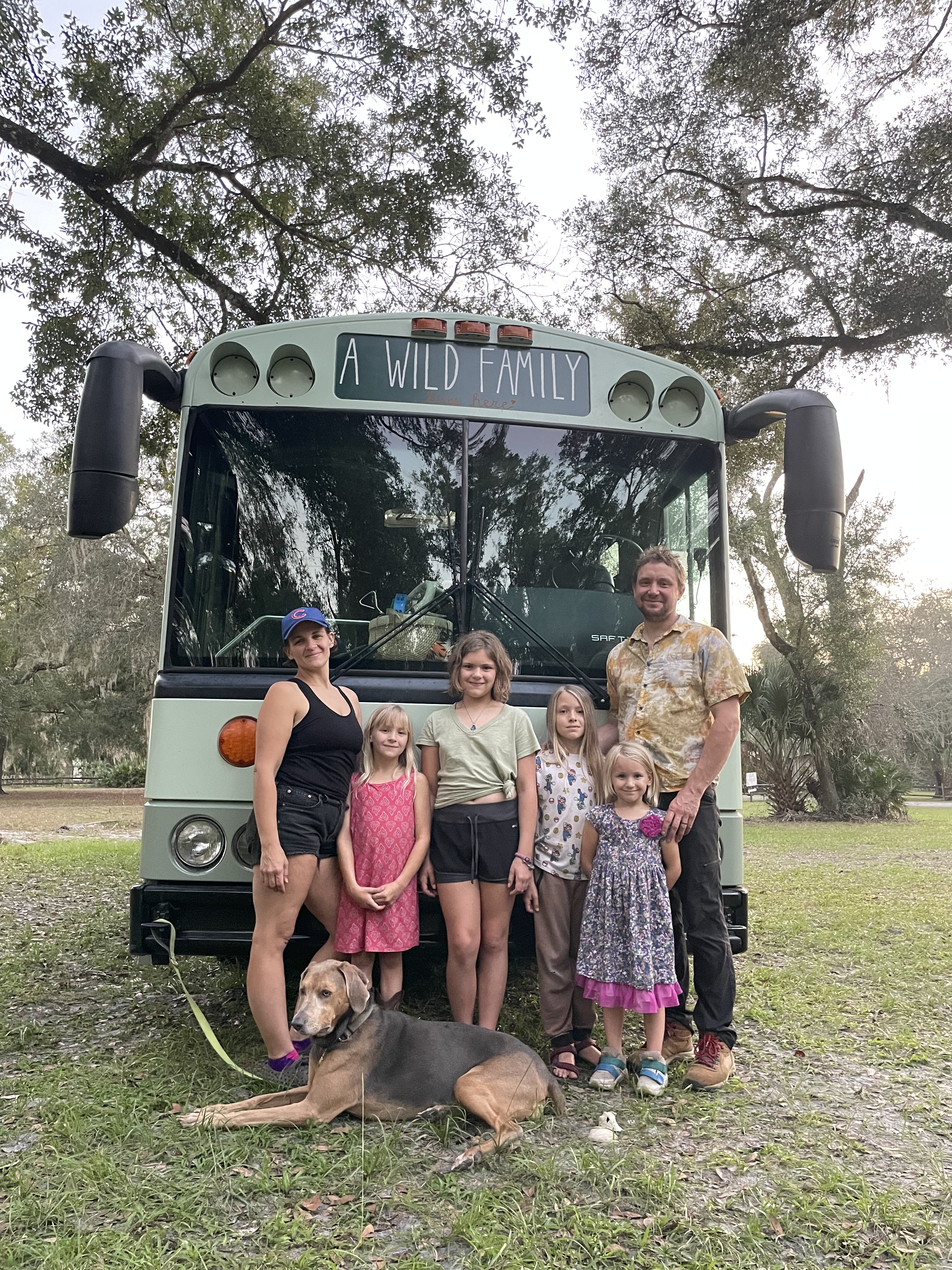 In short…..We(John & AJ) met in 2006, & lived in Plymouth, IN at our permaculture-based, educational farm; Luna Hill Farm(Cultivating Community & Celebrating Curiosity) for 10 years, where we raised their 4 kids, ran the Luna Hill Wild School(Nuturing Wonder, with Nature), & hosted many community-building events. Away from the farm, John worked as a carpenter & AJ taught various classes throughout the community. We sold the farm in 2022, converted a bus to a RV in 3 1/2 months, then hit the road to travel the US for 6 months. We lived & traveled for over a year in that home-on-wheels; volunteering, exploring, & learning so much! Then, we sold our first skoolie…..& are now moved into our 2nd self-converted, off-grid skoolie! After listening deeply to all family members input on what should be our next chapter, we have chosen to root back down & are now settled into our new property in Inverness, Florida! We are going to be building an eco-friendly home here and we’re busy at play & work now, developing our land. We are on just over an acre, with 3/4s of the property wild & wooded(just how we like it!) and are loving being stewards to this land-cultivating a forest garden, developing gardens, gray water systems, gathering spaces, & more for the work we feel grateful to be able to uphold here; living with nature & always evolving, with presence.