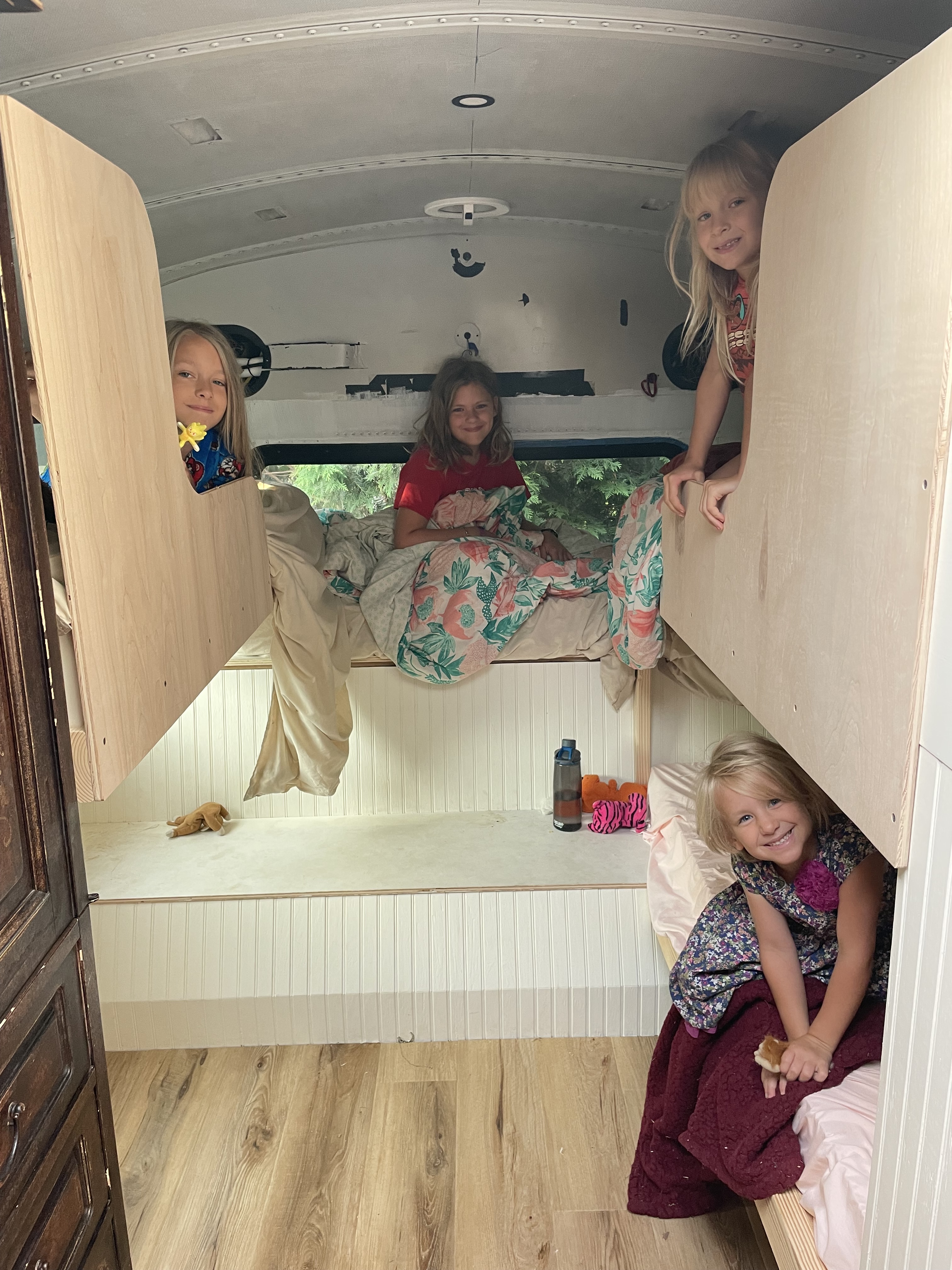 We chose to build a skoolie, not because we were day-dreaming of the now flooded Instagram photos that portray the daily life of the modern nomad family with perfect smiles, flawlessly clean tiny spaces, and catchy dancing videos. I didn’t even have an Insta when we first started sketching ideas! And to be completely honest, we’ve met some of those online influencer families & while they are NOT all the same, we saw lots of strange things like skoolie folks living their days inside, on devices all day-coming out to bribe their kids to do reels when the parents had a sudden inspiration of an envious scenario that they could cash in on. And when we first seriously considered building a skoolie(we were all ready with buyers of the farm and everything) when AJ was pregnant for our 3rd child, the true inspiration was threefold; 1)We spend so much time out-of-doors, this just seemed like a way continue that lifestyle, with waaaay less lawn to mow! 2)John is highly suited to build the bus-exactly as AJ wanted it! 3)It was financially brilliant. Same goes with anything; if you are building a house & you can do literally ALL of it yourself, it is way cheaper.